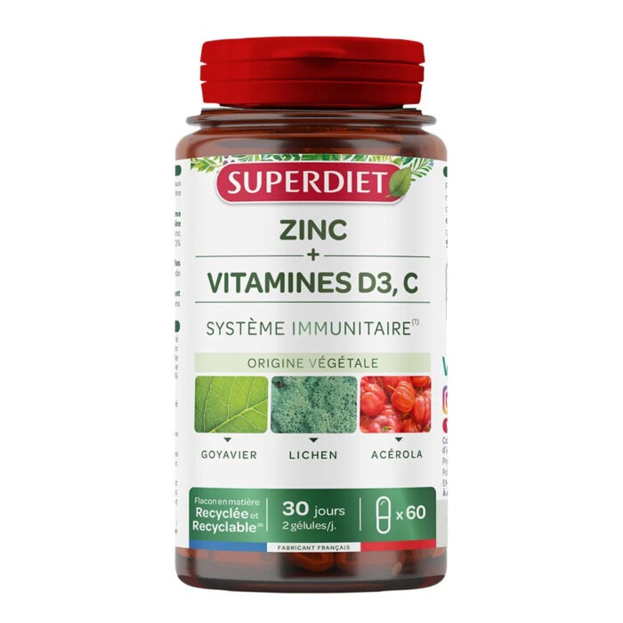 SUPER DIET ZINC + VITAMINES D3,C 60 GÉLULES